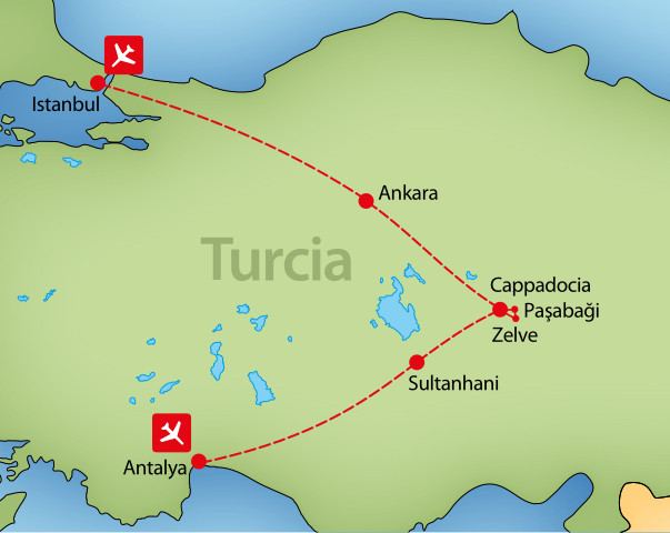 Istanbul, Ankara, Cappadocia, Antalya conform program.